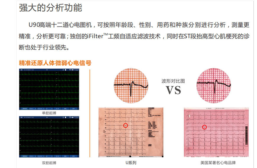 产品名称:数字式十二道心电图机 品 牌:武汉中旗 型号规格:U90 注册证号:鄂械注准20202072871 适用范围:用于测量、采集、显示、记录患者心电信号,供临床诊断。